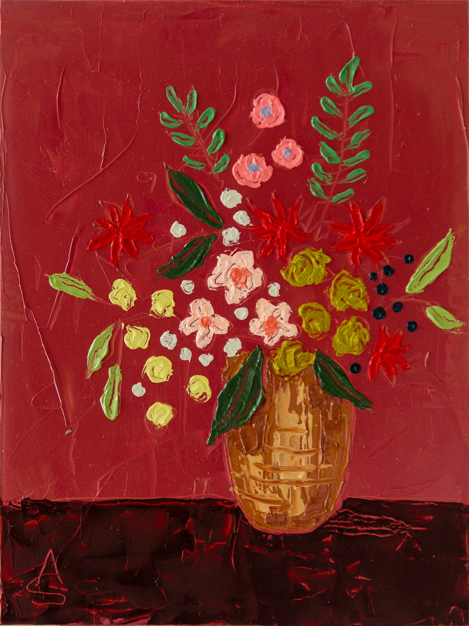 Don't have room for a larger piece, but still want(need!) some flowers on your wall? This original abstract floral, painted in water soluble oil on hardboard panel, will add some color and texture to your space. Perfect for your desk, that weird nook that's hard to decorate, or even the back of a door! Petite art that fits just about anywhere. Framed in a sturdy plein air frame, ready for hanging.